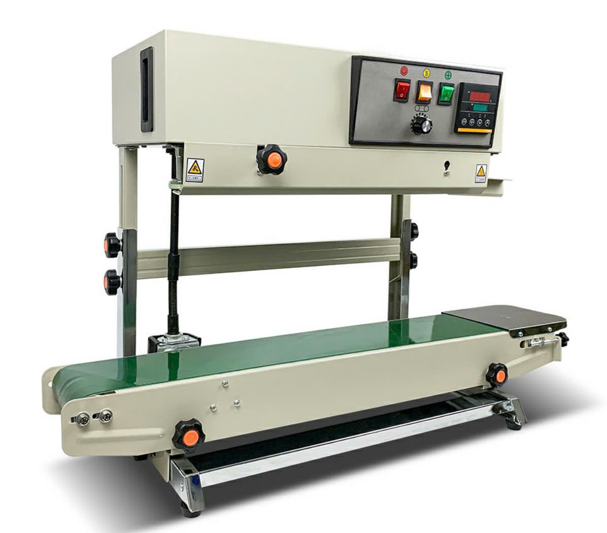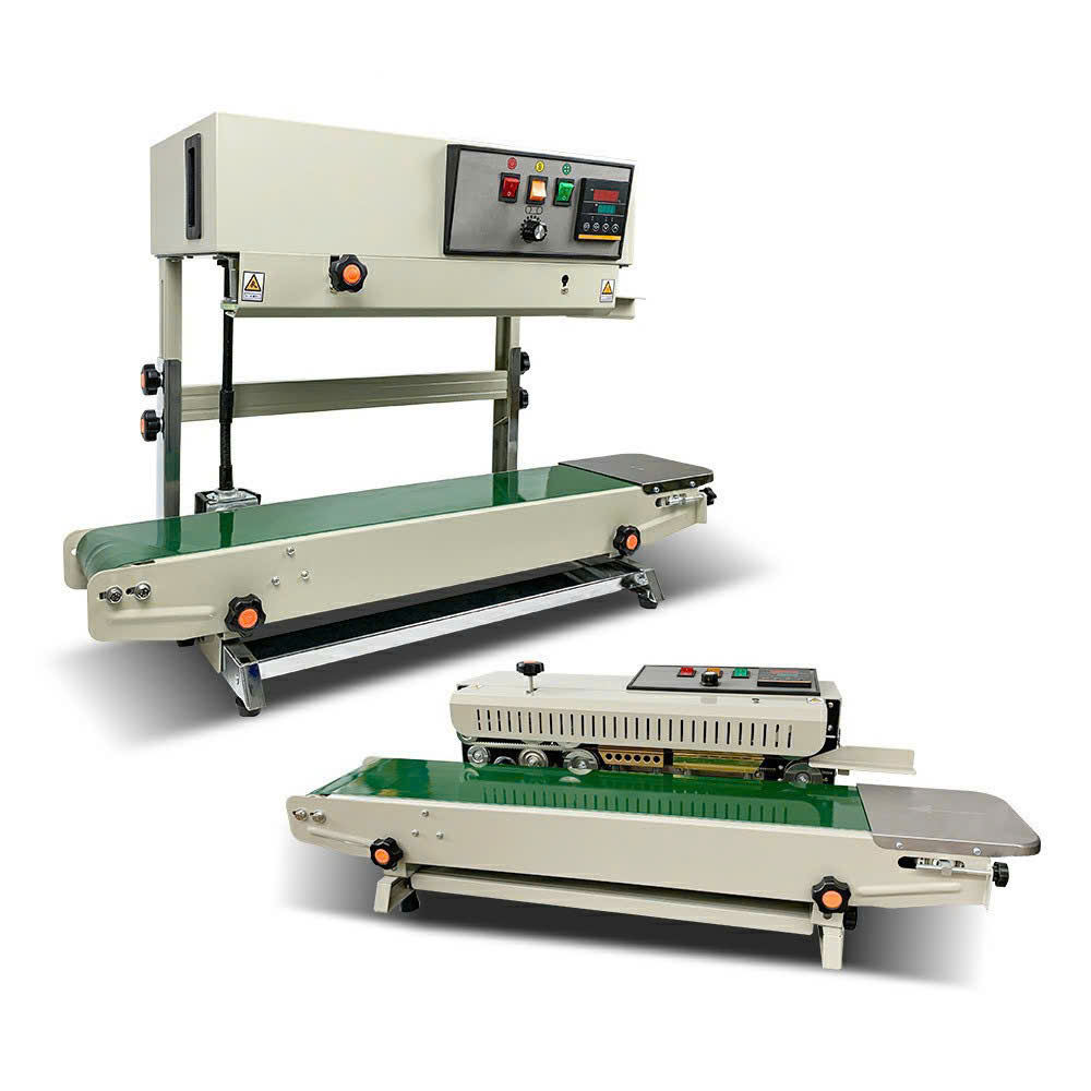Máy hàn miệng túi liên tục đứng FR-900. Với khả năng vận hàng liên tục, làm kín miệng từ chiếc túi này đến chiếc túi khác trong một khoảng thời gian ngắn, tương tự như việc đóng gói hàng hóa theo một dây chuyền trong một nhà máy vậy.