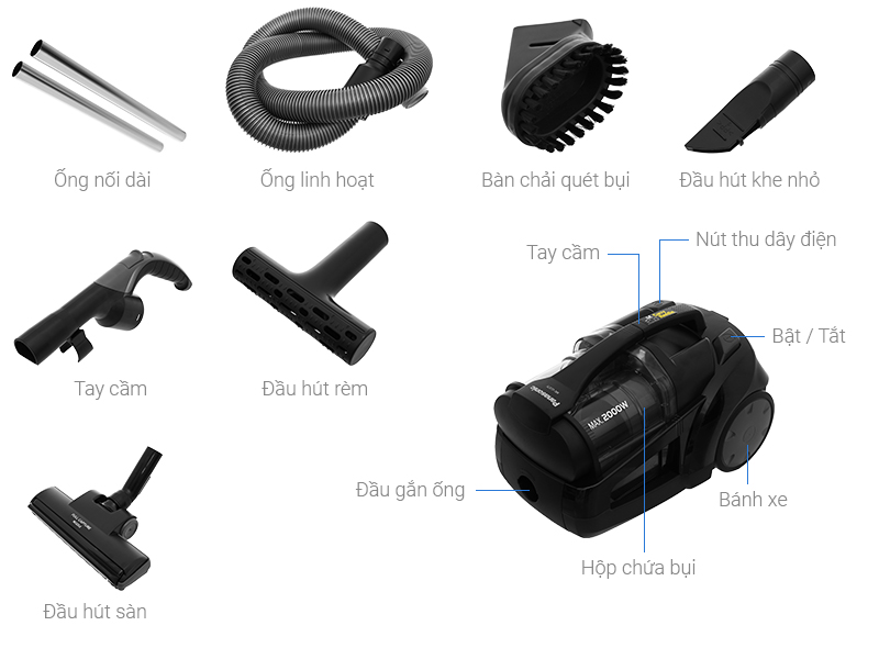 - Có thêm đầu hút rèm tiện dụng - Công nghệ gió xoáy cực đại mang lại lực hút bền bỉ - Lực hút tối ưu - Dây điện tự thu gọn - Bánh xe tiện di chuyển |