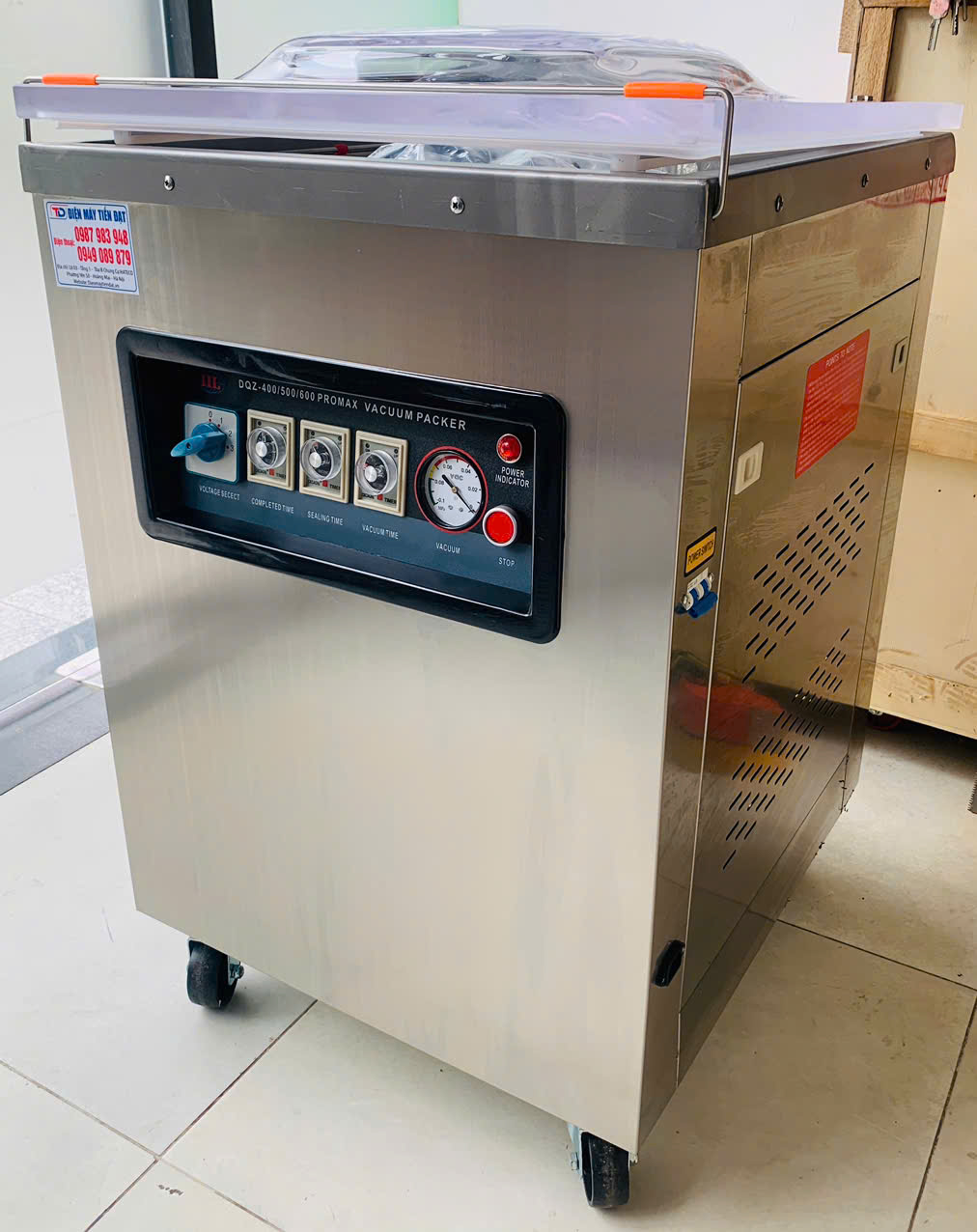 Máy hút chân không công nghiệp Mikoshi DZQ-500 PROMAX (loại cơ) có công suất 900W, áp suất 0.1hpa(mbar), hút hết không khí trong bao bì, ngăn chặn sự phát triển của vi khuẩn để bảo quản thực phẩm được lâu hơn, giảm đáng kể tỉ lệ hư hỏng so với các cách đóng gói thông thường.