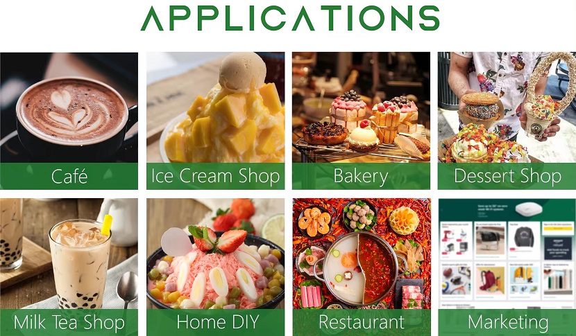Máy phù hợp với các cửa hàng kinh doanh đồ uống, quán trà sữa, siêu thị, nhà hàng đồ ăn nhanh, cửa hàng kinh doanh đường phố, gia đình.