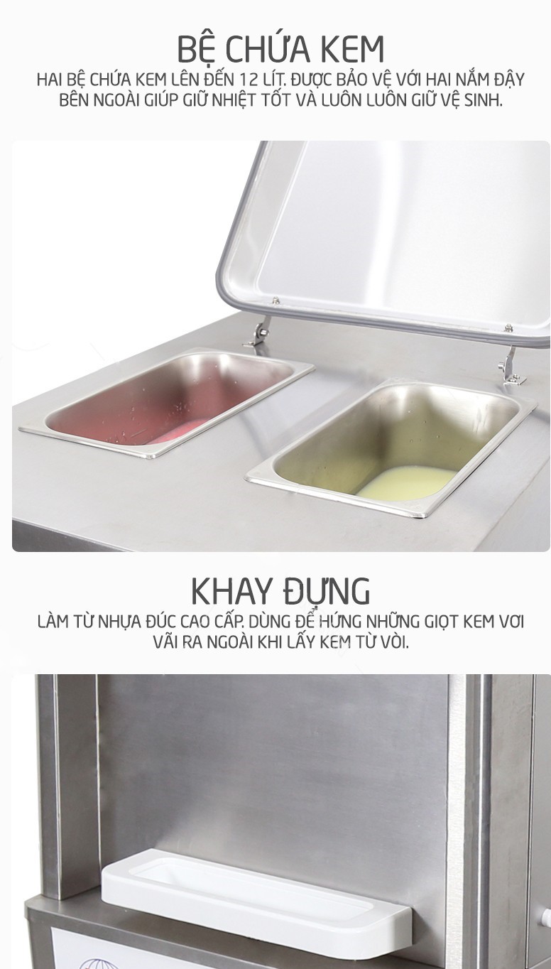 Máy làm kem có mức giá trung bình nhưng chất lượng tốt, đây chính là sự lựa chọn hoàn hảo để bạn đầu tư kinh doanh. Đảm bảo kem làm ra luôn thơm ngon, dẻo mịn đúng chuẩn.