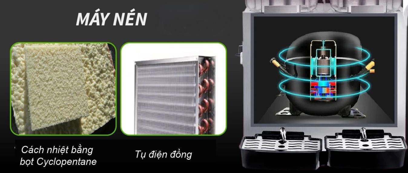 Khác với các dòng máy làm lạnh thông thường sử dụng hệ thống khuấy tự động giúp nước không bị lắng cặn, đồng thời phân phối nhiệt lạnh đồng đều, đảm bảo đồ uống luôn giữ được độ tươi mát và hương vị ổn định trong suốt quá trình sử dụng.