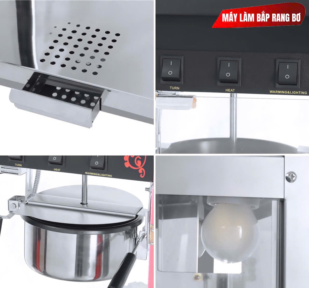 - Đa năng và tiện lợi: Máy có thể sử dụng để nổ nhiều loại bắp khác nhau, đảm bảo đáp ứng nhu cầu đa dạng của khách hàng.