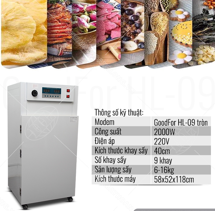 Thông số kỹ thuật máy sấy nông sản GoodFor HL-09 tròn: