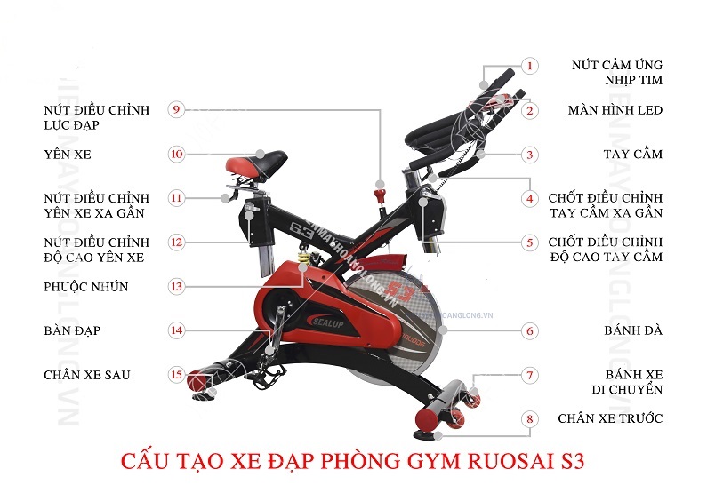 Xe đạp phòng Gym Rousai S3 còn nâng cấp với nhiều chi tiết như: